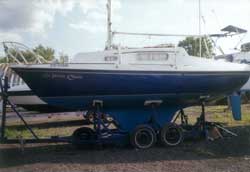 VOILIER 23 PIEDS![]() Il s'agit d'un voilier de 23 pieds quillard avec une grande voile et 2 génois. Le voilier qui est de fabrication artisanale est tres robuste. Il a déja navigué en mer sans problemes. Il est équipé d'une toilette chimique d'un évier. Il est en tres bonne condition, cependant l'intérieur de la cabine nécessite quelques travaux. Le filage et les lumieres fonctionnent bien, Il y a 2 batteries presque neuves (1 an) La coque est en bois recouvert de fibre de verre et la quille est en acier. Il y a aussi un moteur Evinrude 6 forces avec le pied allongé et un dingy. Prix demandé $4900.00 ou avec la remorque $6500.00 La remorque peut etre vendue séparément pour $1800 elle est remarquablement robuste et est pourvue de freins électriques. Robert Valois | |
