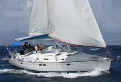 BÉNÉTEAU MOORINGS 38’, 1990![]() Voilier de 38’ comprenant 2 grandes cabines fermées ainsi que 2 salles de bain complètes avec douche. LHT: 37’7 , tirant d'eau: 4' 10", bau: 12' 6", déplacement: 13 700 lbs, ballast: 5 400 lbs. Voilier très performant et très stable. Voiles: Une grande voile avec couverture de bôme intégrée (2000) et lazyjack, génois 120% sur enrouleur Moteur/électricité: Moteur Yanmar de 27 hp en excellente condition. 3 batteries changées en 2003. Inclus chargeur de batteries automatique, alternateur et système électrique 12V et 110V. Réservoir à diesel de 32 gals, trois réservoirs d'eau douce totalisant 130 gallons. Instruments: Loch, Profondimètre, VHF, GPS chartplotter. Radio AM-FM avec 2 haut-parleurs. Intérieur: Aménagement spacieux, confortable avec beaucoup de rangement et de boiseries. Banquette en cuir blanc en très bonne condition. Réfrigérateur et congélateur de grande capacité se refroidissant au moteur. 2 salles de bain complètes avec toilette neuve dans la pointe (2004). Très éclairé, avec 6 écoutilles et 7 hublots. Cuisine en L avec 2 grands éviers en acier inoxydable. Poêle et Four en acier inox. Eau chaude sous pression. Divers: Très grand cockpit avec table, jupe arrière avec coffre, douche et échelle de bain. Deux bouteilles de propane en aluminium de 10 lbs dans un coffre aéré. BBQ propane. 2 ancres. Un guindeau électrique Lewmar (à réparer). Annexe Zodiac de 8'6" (1998) avec moteur de 3.3 c.v. Bimini couvrant complètement le cockpit. 5 Winch autobloqueurs Lewmar. Tous les équipements de sécurité sont inclus. Prix : 99,000$